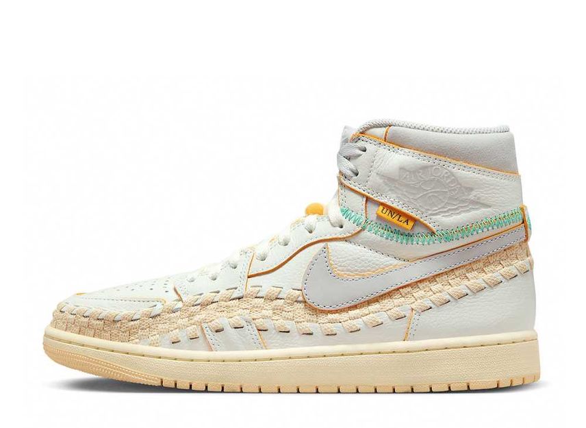 Dressed in a Sail, Wolf Grey, Muslin, Pale Vanilla, Kinetic Green, and University Gold color scheme. This offering of the Union x Air Jordan 1 High OG comes in an OG-styled “Neutral Grey” makeup constructed in a full leather build with woven detailing wrapping around the entire shoe. Other details include Wolf Grey detailing on the Swooshes, collars, “Nike Air” tongue tags, and Wings. Union’s “UN/LA” signature tag on the lateral with exposed Green stitching and “BBS” embroidered on the heels nodding Union founder Chris Gibbs’ wife Beth and her Bephie’s Beauty Supply brand. A two-tone aged rubber sole completes the design. The shoe will also come with an extra set of laces and housed in special packaging.
